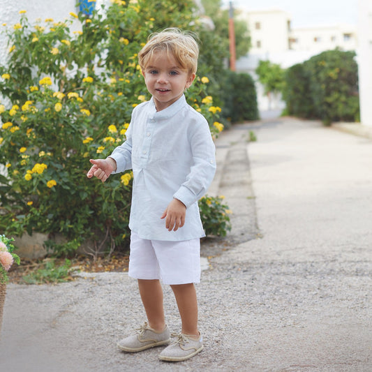 Traje de lino pantalón corto Azul 590 para niño Mimilú