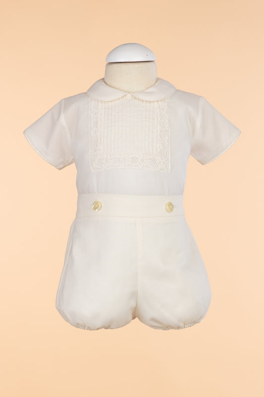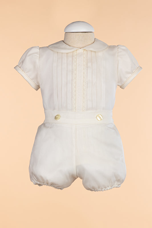 Traje de lino pantalón corto Beige 590 para el niño Mimilú