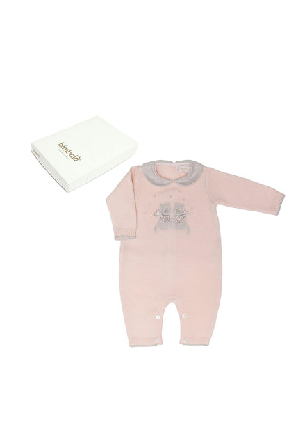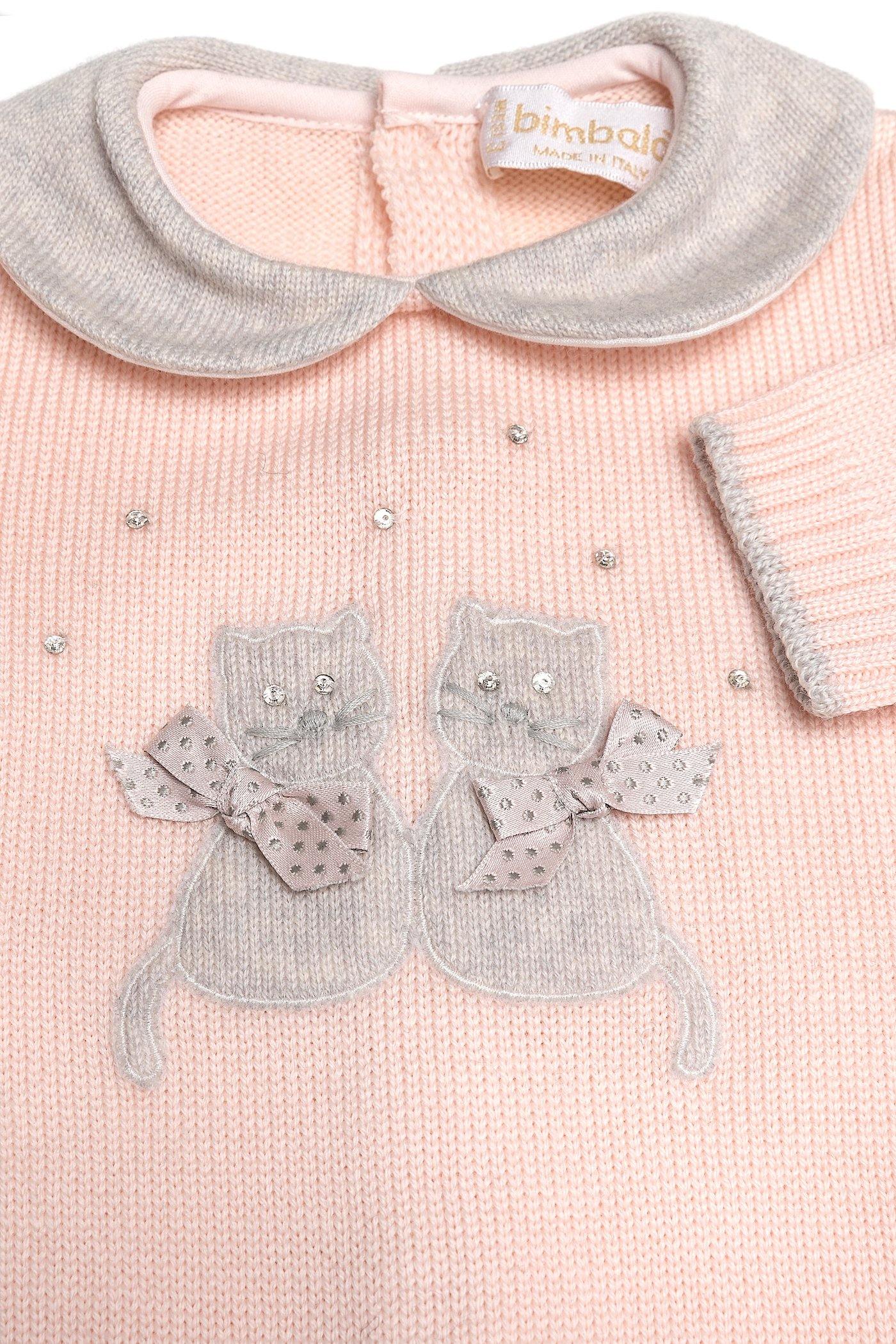 Baby girl wool set in pink color with long sleeves and legs of the brand Bimbalo. Special quality fabric with an elegant-formal design, it will be the most comfortable garment of your princess for winter. It has a cat design in gray color on the front. Button closure on the back.It is made only from high quality in Italy, according to the exclusive creative concept of the brand.