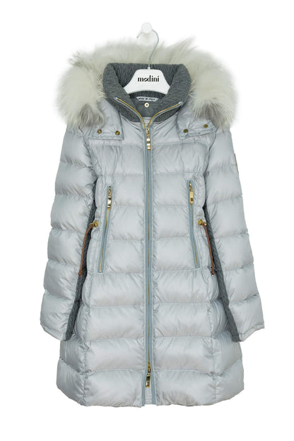 Grey coat of the brand Canzitex. Garment with details, with hood and natural dyed and removable fur, high curly collar and zippers in gold. Gray coat with hood, comfortable and warm. Ideal for snow or rain in winter or special occasions. Special quality fabric with a casual-casual design. Only in Grey for girls up to 12 years old. Canzitex coat is a garment that uses high quality patented fabrics, natural quilt, exclusive and expensive accessories. It is a luxury for true appreciators!