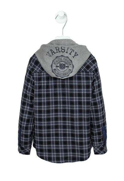 Lapin House brand shirt . Garment with details, with buttons at the opening and checkered print throughout its design. Shirt with hood in gray and black and white print, comfortable and flexible. Ideal for any occasion in Autumn-Winter. Special quality fabric with a casual-sport design. Only for children up to 12 years old. Lapin House brand shirt , combination of sophisticated modesty, elegance and quality. The careful development of the patterns and the great attention to every detail make the clothes of this brand practical and comfortable.