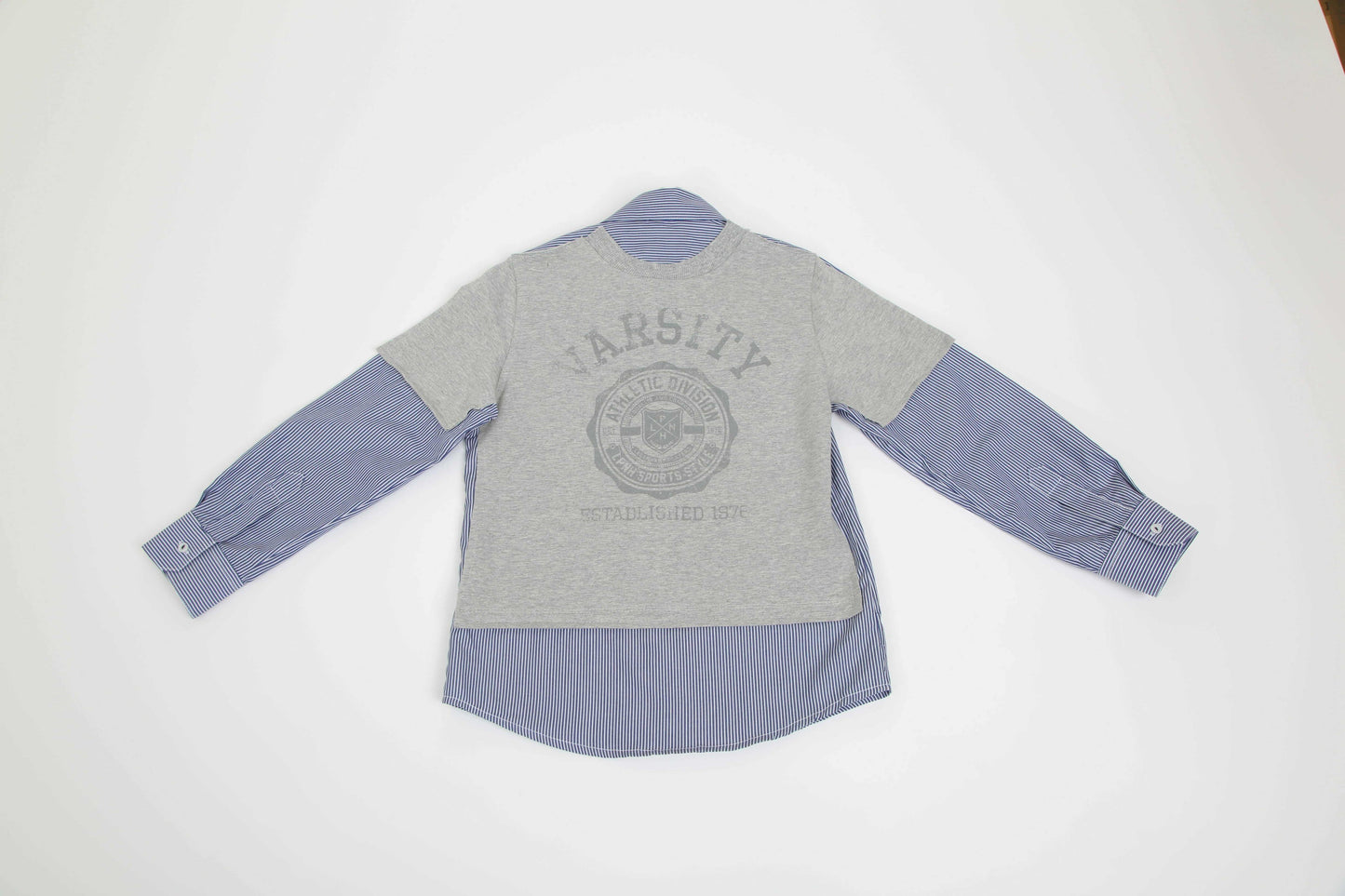 Lapin House brand shirt . Garment with details, with Print of logopedias in cotton fabric, with discreet stripes in the design. Blue striped shirt, comfortable and flexible. Ideal for any occasion in Autumn-Winter. Special quality fabric with an elegant-formal design. Only for children up to 8 years old. Lapin House striped shirt , a combination of sophisticated modesty, elegance and quality. The careful development of patterns and great attention to every detail make the clothes of this brand practical and comfortable.