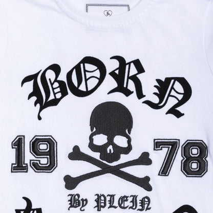 Neck SS Rock PP T-shirt by Philipp Plein. Garment with details, with print of the brand adding embedded crystals, stamped back of the garment. T-shirt in white color and short sleeve, warm and flexible. Ideal for any occasion. Special quality fabric with a formal-causal design. Only in white up to 14 years for children. T-shirt brand Philipp Plein, offers unlimited imagination of children to provide an exceptional, original and memorable style for boys and girls.are popular all over the world.