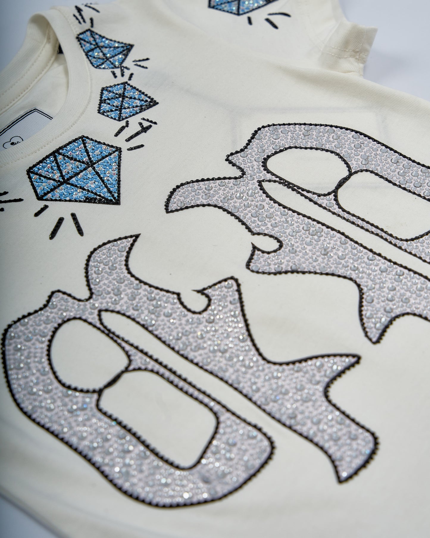 T-shirts of the brand Philipp Plein with the print of logo in the letters and diamonds in crystals in the center, logo of the brand on the leader label behind. Comes without sleeves in white color, of high quality and sophisticated. Ideal for putting on every day or any occasion. This casual-informal outfit is of the highest quality material. It suits girls until 12 years old. It allows your baby to move freely and comfortably without loosing it's elegance and glamour. T-shirt of the brand Philipp Plein gives limitless imagination of children, to give an exceptional, original and memorable style for boys and girls. Great combination of price and high quality. The brand's products are popular all over the world.