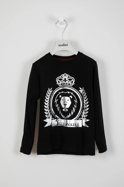 Black polo shirt with long sleeves in cotton with lion's head enriched with glitter on the front. It is printed with the brand's emblem.