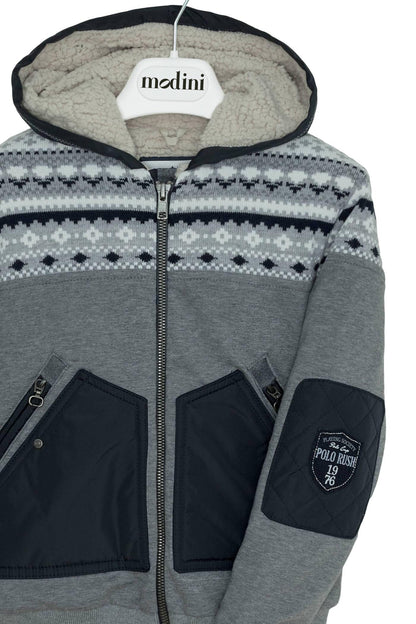 Lapin House sweatshirt . Garment with details, with pockets and zippers at the opening. Gray sweatshirt and hood with fleece interior, warm and flexible. Ideal for any occasion in Autumn-Winter. Special quality fabric with a casual-sport design. Only for children up to 12 years old. Lapin House sweatshirt , a combination of sophisticated modesty, elegance and quality. Careful pattern development and great attention to every detail make this brand's clothing practical and comfortable.