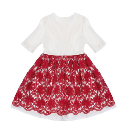 Dress brand I Pinco Pallino Garment with details, double bottom finished in embroidered Tull. White dress with long sleeves and red embroidered skirt, very sophisticated and comfortable. Ideal for special occasions or days Autumn-Winter. Special quality fabric with an elegant-formal design. Only in white color and red tull embroidery for girls up to 8 years old. Elegant dress, typical of its brand, with mobility and comfort with handcrafted finishes and exquisite taste. The models of children's clothing brand I Pinco Pallino belong to the category high-end. Company that became the first real brand for children's fashion with irreplaceable aesthetics.