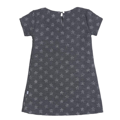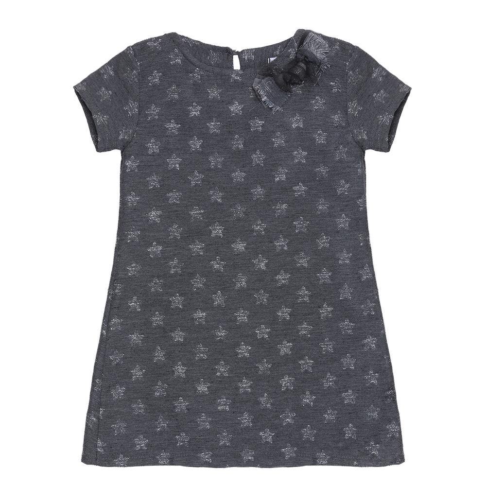 Magildress . Garment with details, with stars in metallic print and incorporating black bow. Dark gray fabric dress with short sleeves for girls, flexible and comfortable, ideal for autumn-winter evenings or other occasions. Ideal for autumn-winter evenings or other occasions, special quality fabric with a casual-casual design. Only in gray color for girls up to 14 years old. DressMagil brand is a high quality garment, characterized by precise finishes and a sophisticated style typical Italian. MAGIL, your world is a game made of fantasy and fairy tales.