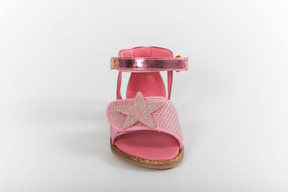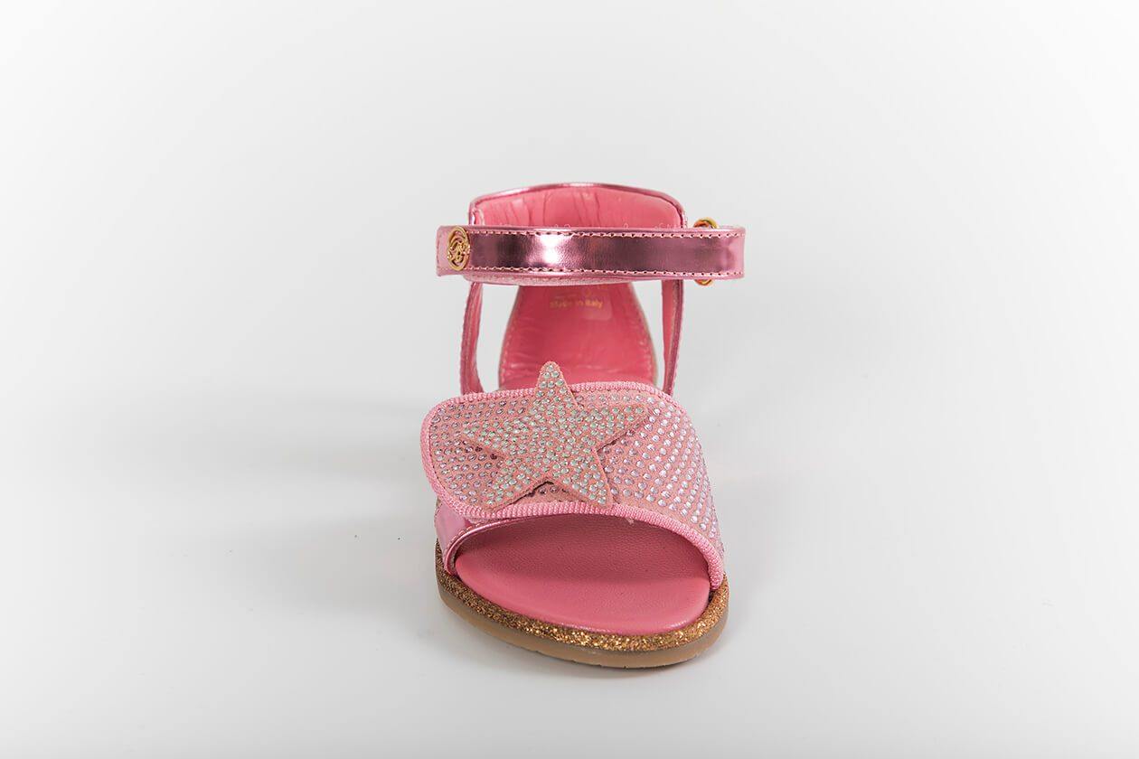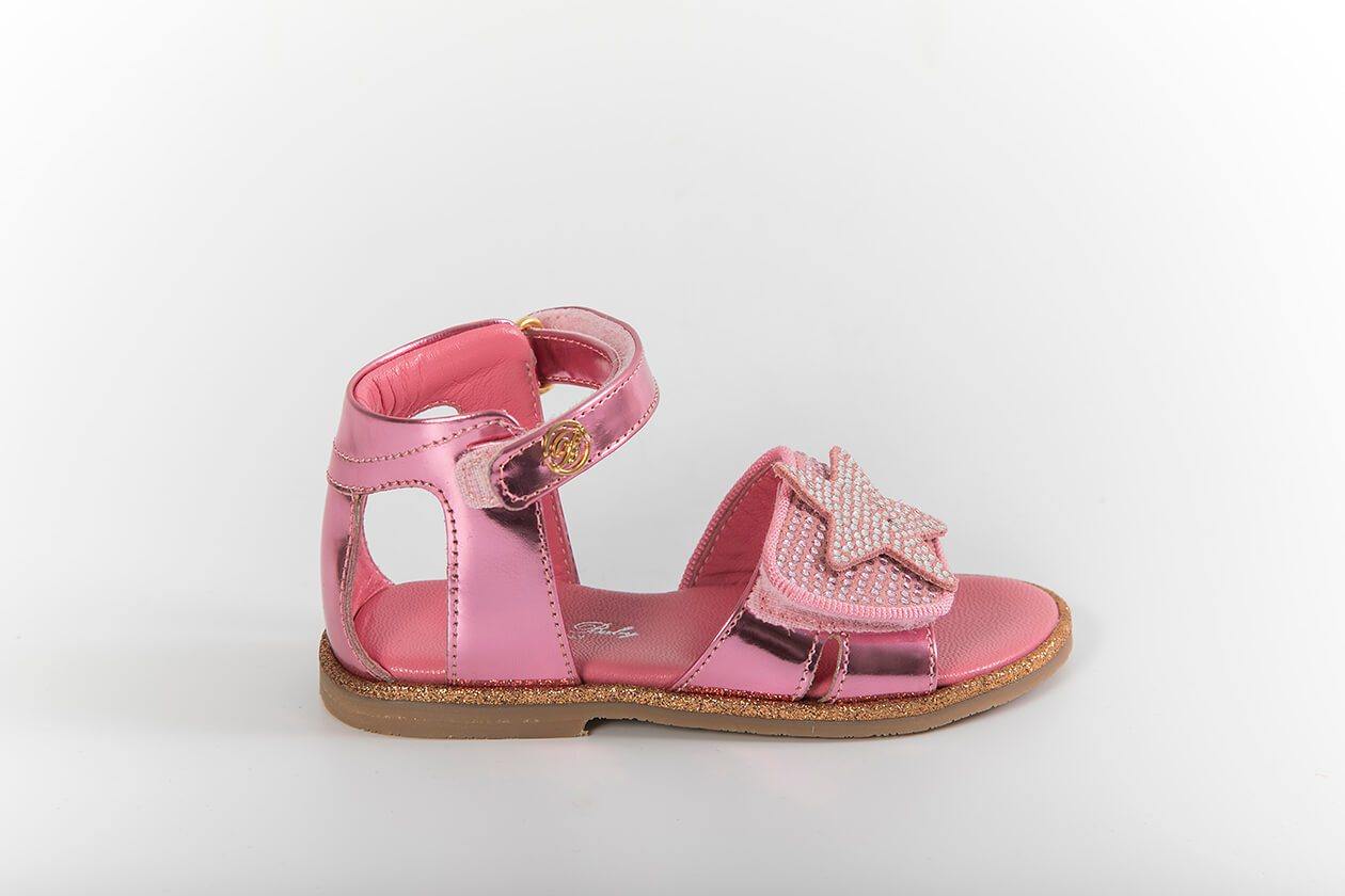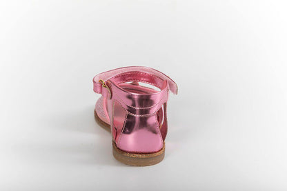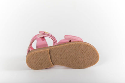 Miss Blumarinelogosandals . Pink, calfskin leather, leather insole with logo, logo with silver lettering, open toe and flat rubber sole.