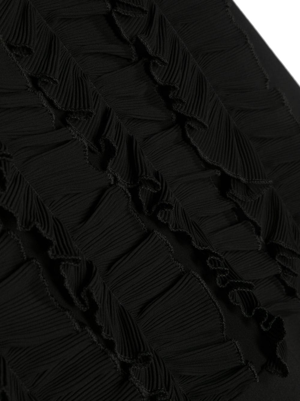 TWINSET brand dress with ruffles. Black, stretch fabric, ruffle detail, silver-tone logo plaque, round neck, fitted cuffs, flared skirt, concealed zipper fastening at back, knee-length design and straight hem. Special quality fabric with a formal-casual design. TWINSET brand dress, original and memorable for children.