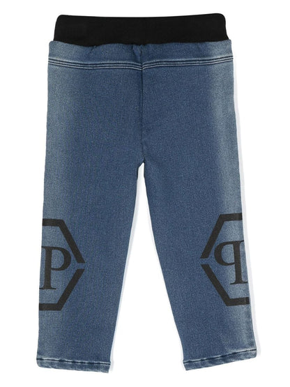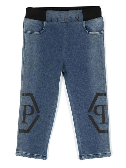 Pantalón largo denim de la marca Philipp Plein. Prenda con detalles con logo letreado bordado por dos lados. Pantalón en color azul claro, cálido y flexible. Ideal para cualquier ocasión. Tela de especial calidad con un diseño informal-causal. Pantalón denim de la marca Philipp Plein, ofrece una imaginación ilimitada de las niñas para brindar un estilo excepcional, original y memorable para niños y niñas. Son populares en todo el mundo.