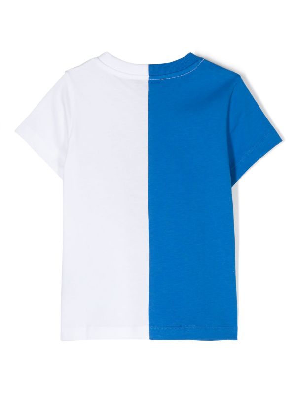Camiseta de color blanco/azul de la marca Moschino. Prenda con detalles, de color blanco y azul, de algodón, estampado Teddy Bear y logo MOSCHINO en la parte delantera, cuello redondo y manga corta. Camiseta es cómoda y flexible. Ideal para cualquier ocasión. Tela de especial calidad con un diseño formal-causal. Camiseta de la marca Moschino, ofrece una imaginación ilimitada de los niños para brindar un estilo excepcional, original y memorable para niños y niñas.