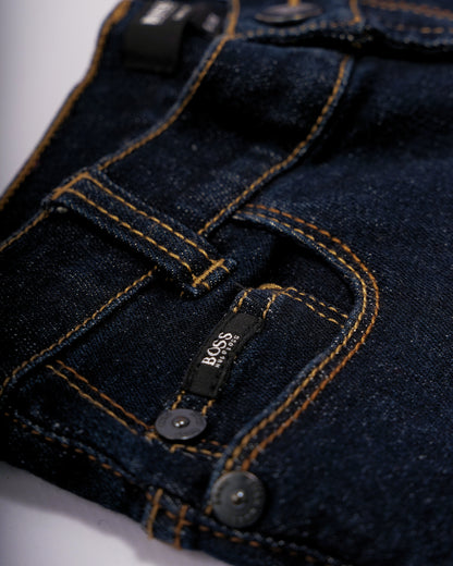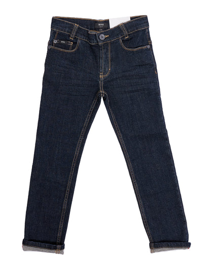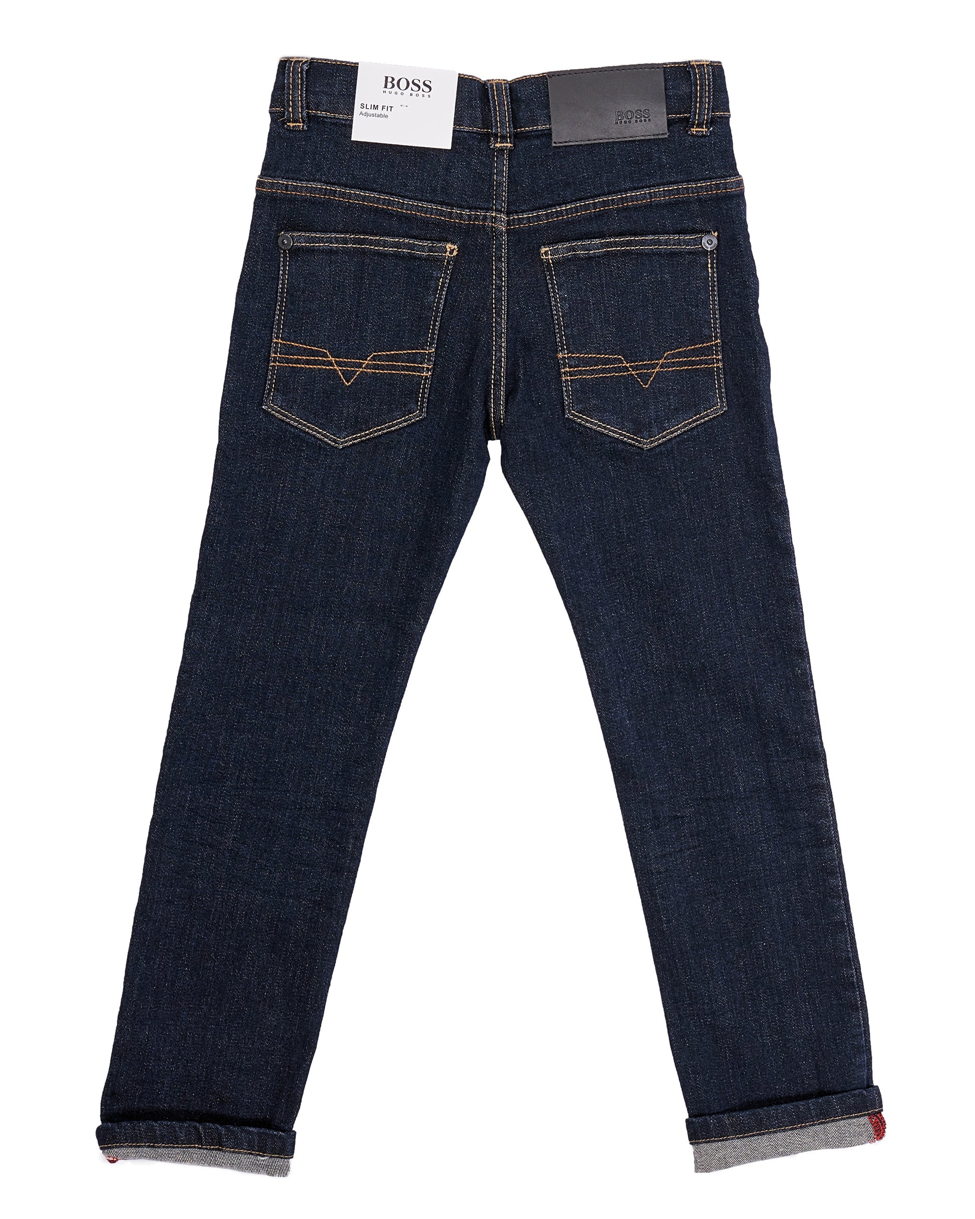 Pantalón tejano de la marca Hugo Boss. Prenda con detalles, estilo jaspeado con elástico. Pantalón tejano azul oscuro, para niño, cómodo y flexible. Ideal para tardes Otoño-Invierno. Tela de especial calidad con un diseño casual-sport. Únicamente en color azul para niños hasta 12 años. Pantalón de la marca HUGO BOSS Kids combina una paleta de colores clásica, los detalles de diseño simple, las formas relajadas y los tejidos más suaves, la colección de Hugo Boss para niños es sinónimo de un clásico lujo diurno.