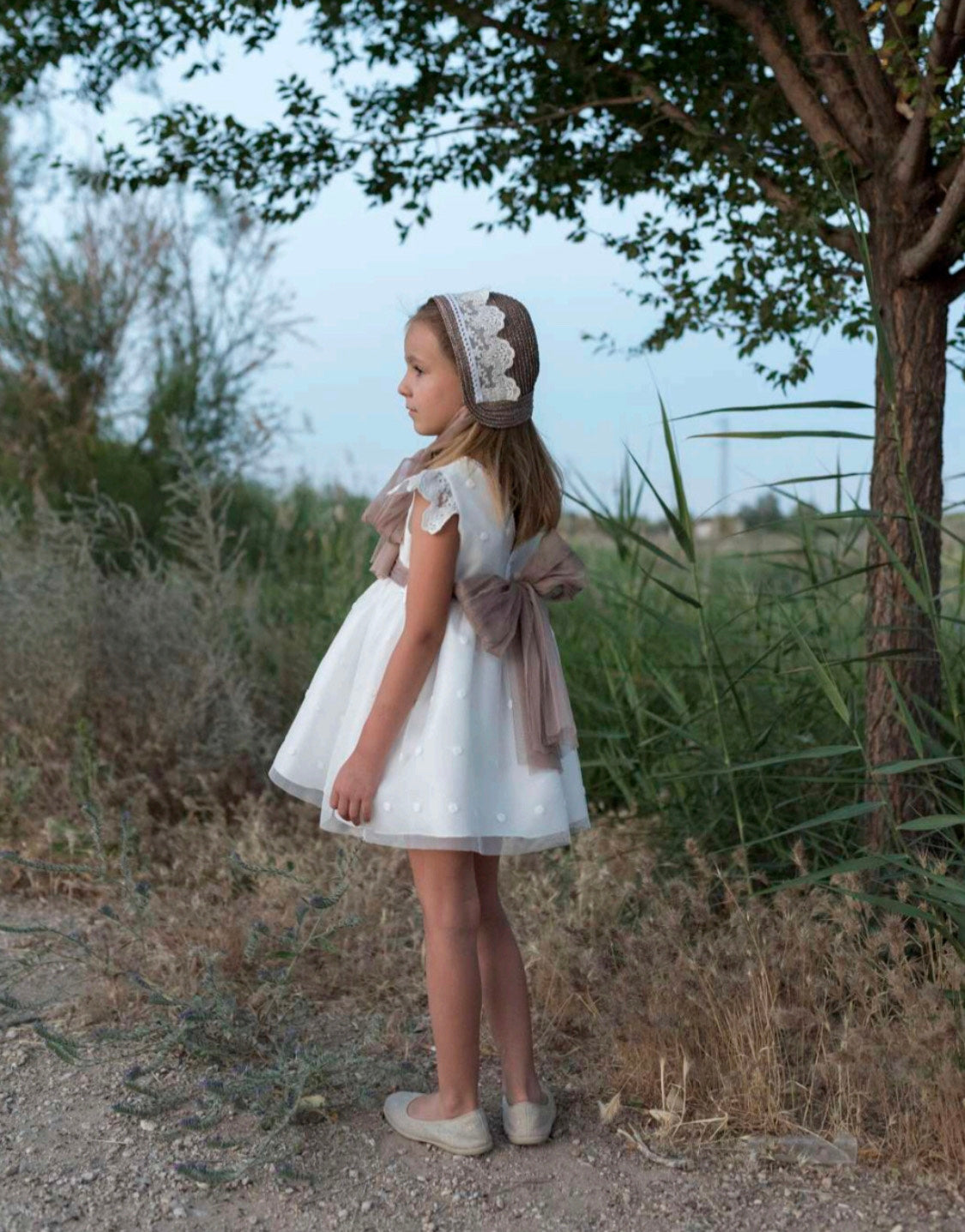 El vestido de ceremonia de color blanco, de la manga larga, con una falda corta de doble capa. Es una prenda con detalles como el cuello abierto y el escote del mismo exclusivo estilo. El vestido de las mangas del encaje de flores muy elegante y de la falda acabada con el bordado de flores y con el lazo de tul para estilizar la figura. Vestido de la marca Marina´s Moda abricado siempre con las más exigentes normas de seguridad y siempre bajo el sello “hecho en España”. Los diseñadores de moda esfuerzan para tener en cuenta las necesidades de las niñas al máximo, creando una comfortable y práctica pieza para niñas a la vez que se distingue por la belleza y la elegancia.