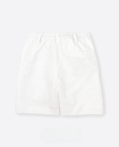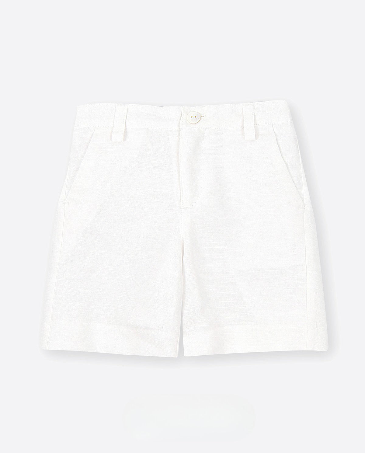 Traje completo en color blanco/beige de lino de la marca AMAYA. Set completo de camisa elegante, de manga larga, a rayas de color blanco/beige y pantalones cortos de color blanco. Traje cómodo y delicado. Ideal para ocasiones especiales de Primavera-Verano. Tela de especial calidad con un diseño elegante-formal. Los diseñadores de moda esfuerzan para tener en cuenta las necesidades de los niños al máximo, creando una confortable y práctica pieza para niños a la vez que se distingue por la belleza y la elegancia.