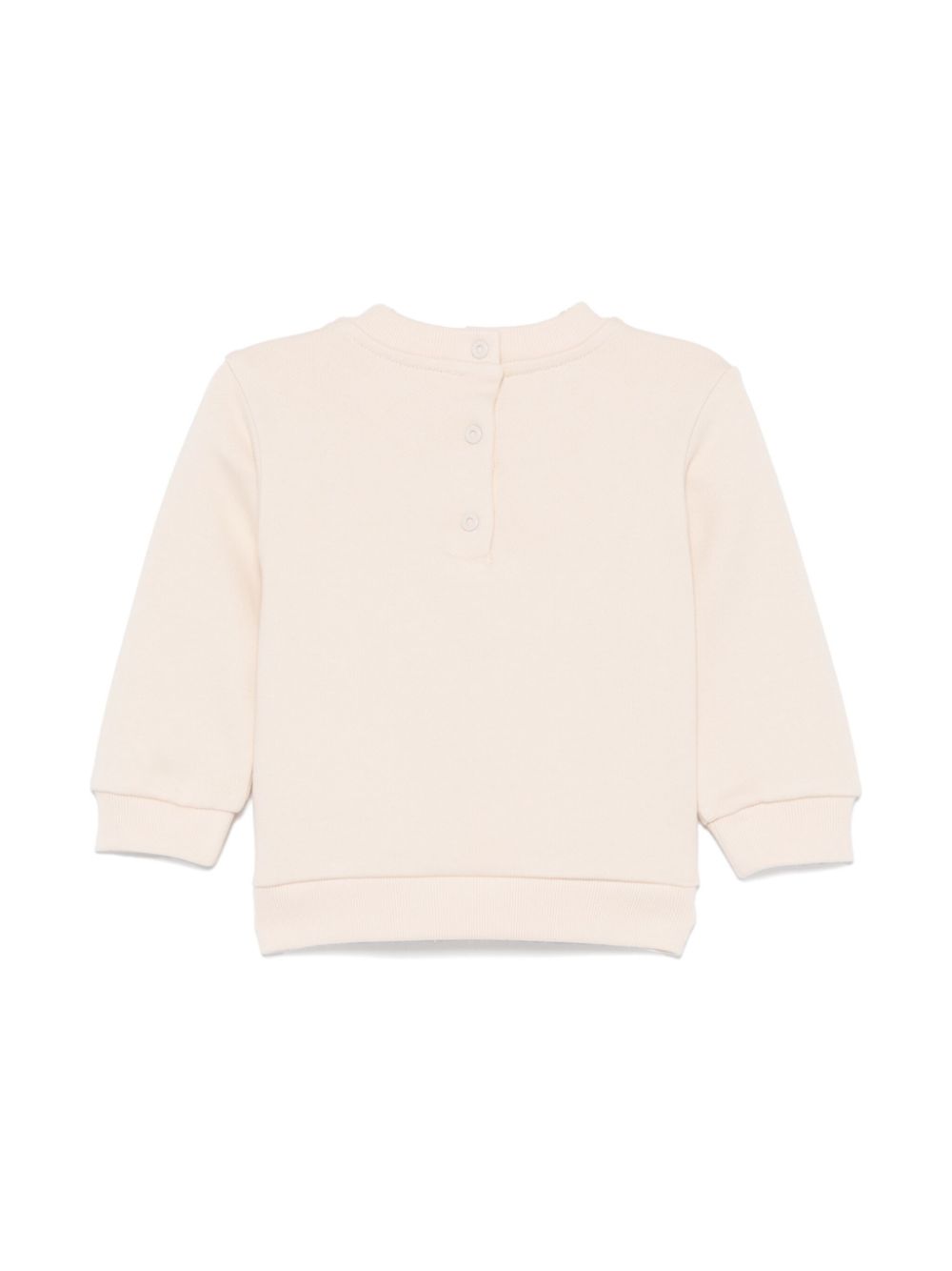 Sudadera con ardilla estampado de la marca Fendi kids para bebé niña. De color beige, algodón,tejido, logo FENDI estampado en la parte delantera,estampado gráfico de ardilla en el pecho, cuello redondo,ribete de canalé, manga larga y dobladillo recto. Fendi Kids tiene una impresión de marca reconocible, popular en todo el mundo. Las colecciones infantiles repiten modelos para adultos, combinan lujo y comodidad.