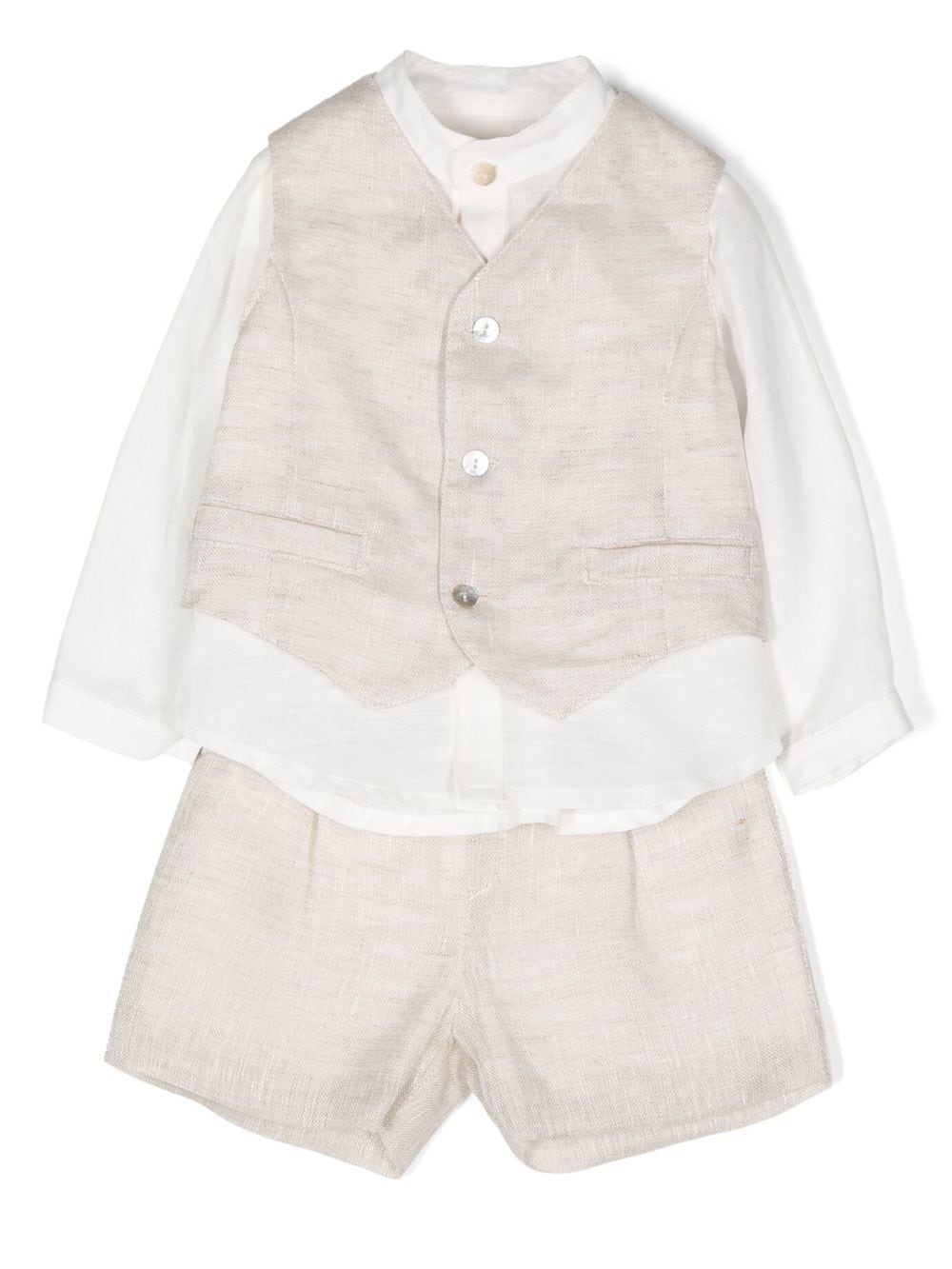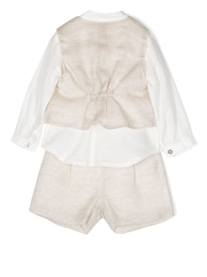 Traje de lino pantalón corto Beige 590 para el niño Mimilú