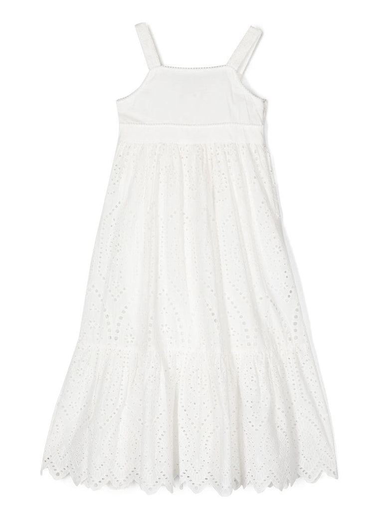 Vestido con detalle bordado con tirantes de la marca TWINSET. Color blanco, algodón, diseño sin mangas y cierre lateral con cremallera.