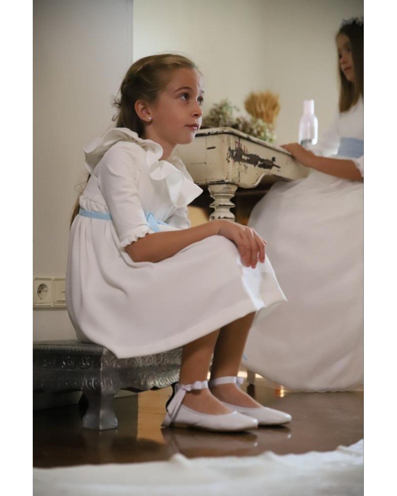 El vestido de ceremonia para niña. Cómodo y delicado. Puede cambiar el color del lazo a juego con su corona de flores. Vestido elegante de la marca Petritas, se fabrican únicamente a partir de alta calidad en España, de acuerdo con el concepto creativo exclusivo de la marca.