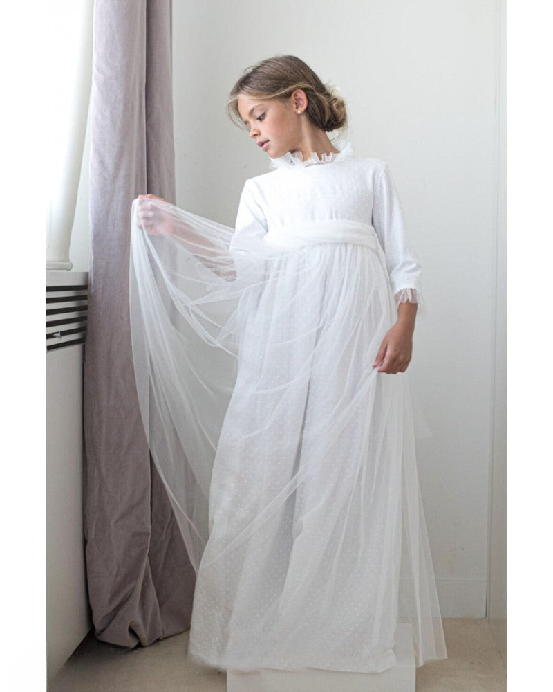 Vestido de comunión Plumetti Blanco "tul en cuellos y puños" de la marca PETRITAS (lazada no incluida)
