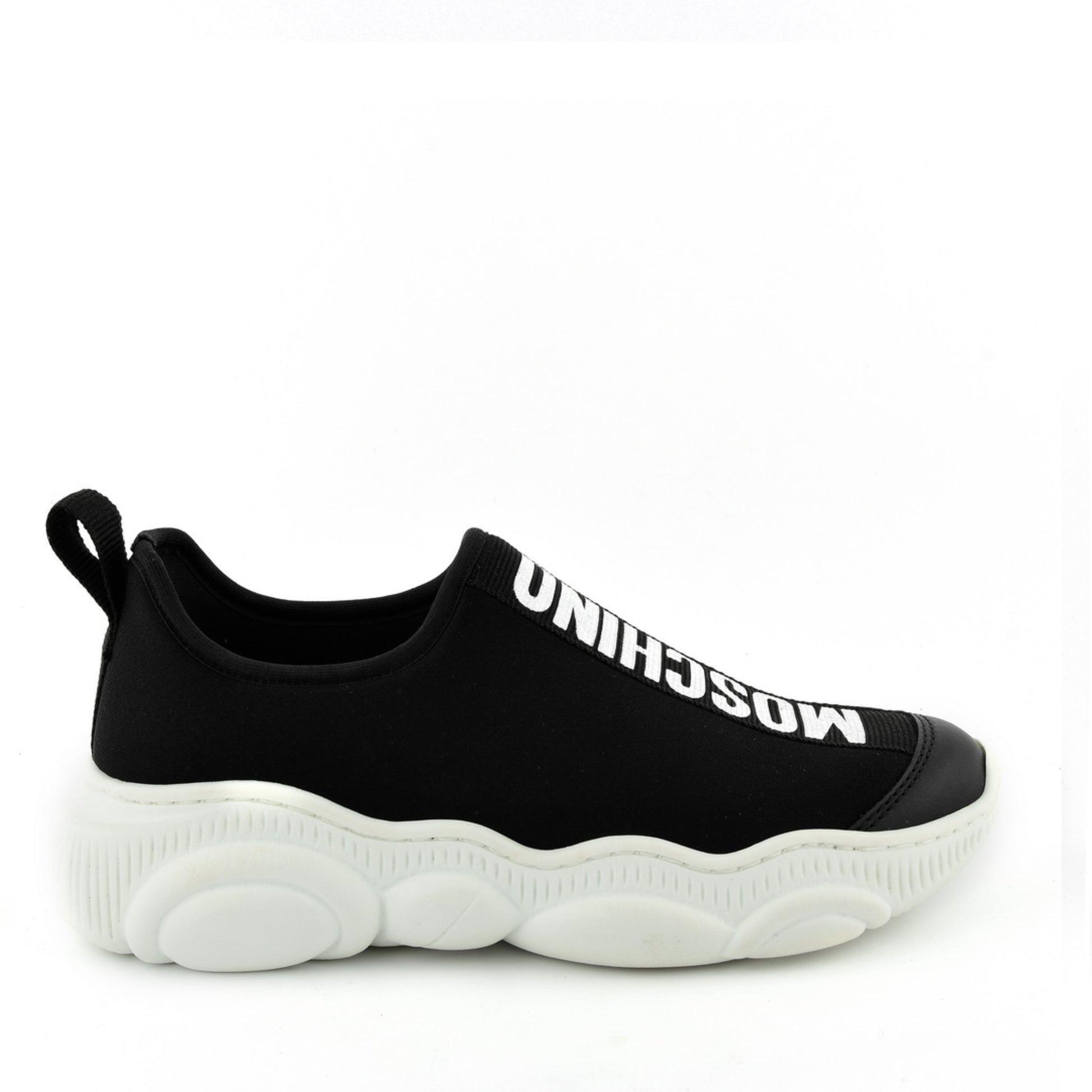 Zapatos de la marca Moschino. Logo en punto de intarsia, suela de goma Teddy Bear característica, puntera redonda y lengüeta en la parte posterior.