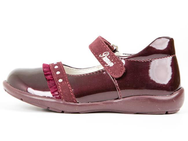 Zapatos para niña - livianos, máxima flexibilidad de la suela, plantilla transpirable anatómica y extraible. Los zapatos de marca italiana Primigi son con forro de piel, tienen forma ergonómica, decorados con brillantes falsos y volantes. Son muy cómodos para cualquier occasion de Primavera-Verano.